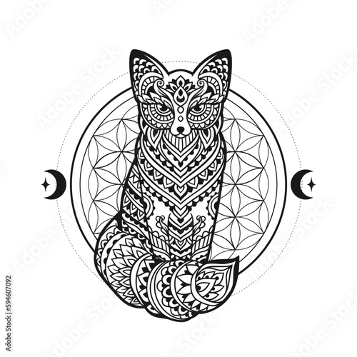Vektorové Boho fox tetování nebo tričko tisk design. Liščí hlava na půlměsíci v kombinaci s přírodou a boho prvky.