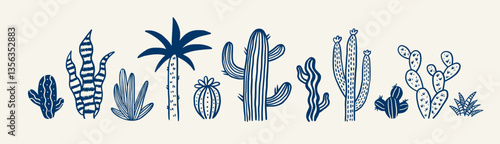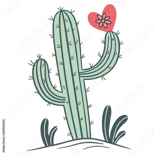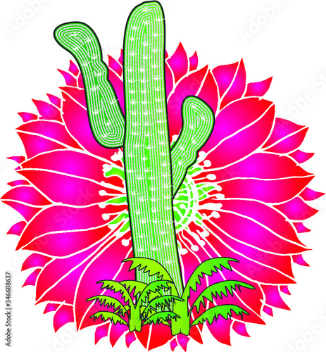 Vektorové kaktus Mexické pouštní květina v květu kreslené ilustrace. Tropické sukulentní rostlina květ izolovaných na bílém pozadí