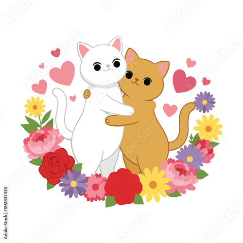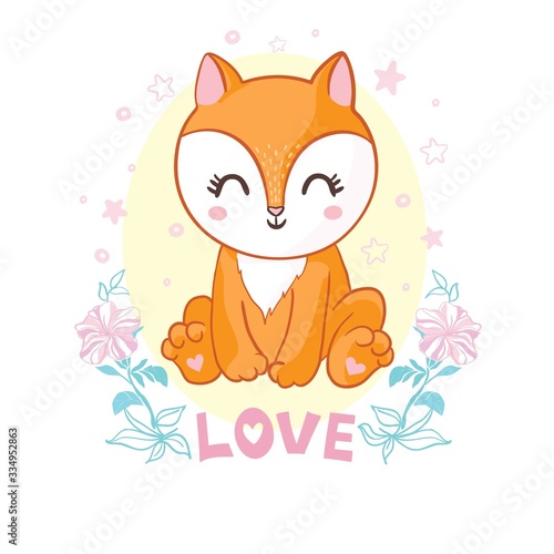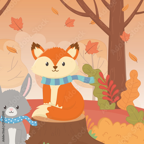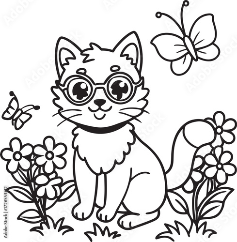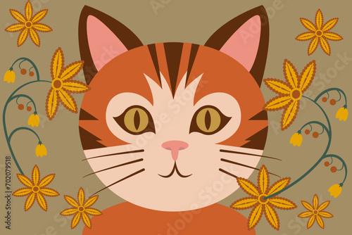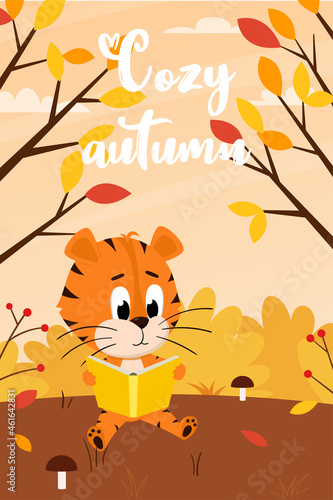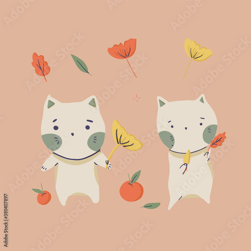 Vektorové pet roztomilý kreslený kočka sedí v podzimní listí haldy. Plochý zvířecí charakter. Kotě ikona emotikony izolovaných na bílém pozadí