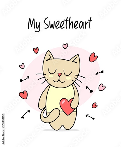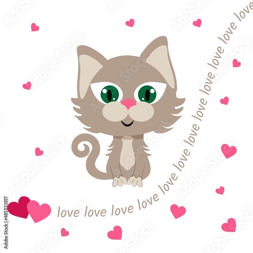 Zvíře s láskou vektor. Roztomilá kočka skákání z dárkové krabičky karikatura ikona ilustrace. Sladký šťastný charakter pro Valentýna, narozeniny nebo svatební pohlednice romantický plakát izolovaný design na bílém pozadí