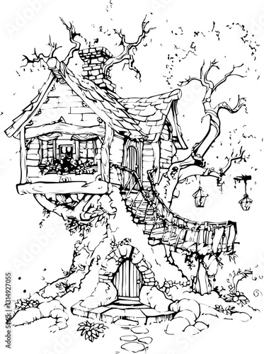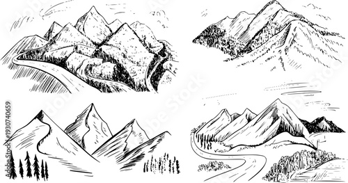 Eagle tattoo art styl. Vektorové geometrické tetování skica. Vintage ručně tažené orel, hory, les.
