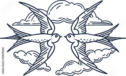 Styl tetování delfínů. Vektorové geometrické tetování skica. Vintage ručně tažené kompas růže a krásný oceán delfín.