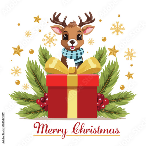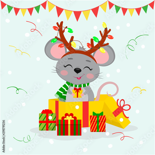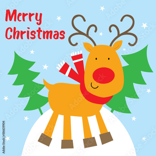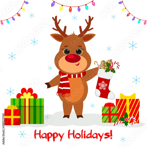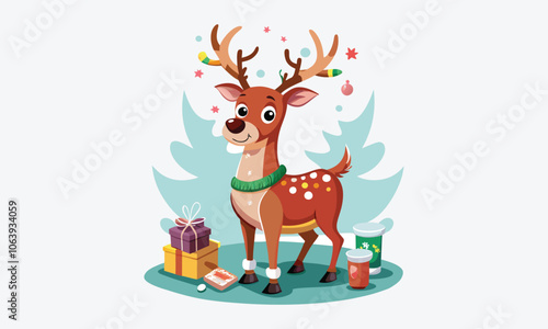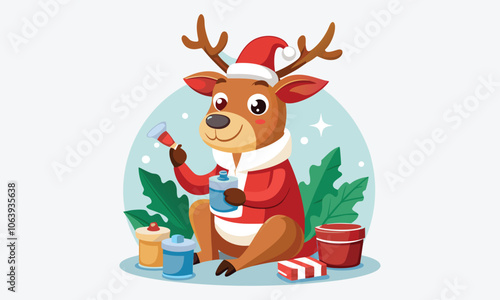 Vektorové roztomilé vánoční fox animal cartoon ilustrace. Zimní dovolená happy character card design pro vánoční a novoroční pozdrav. Postava čmáranice na sobě sobí rohy a čelenku z jmelí