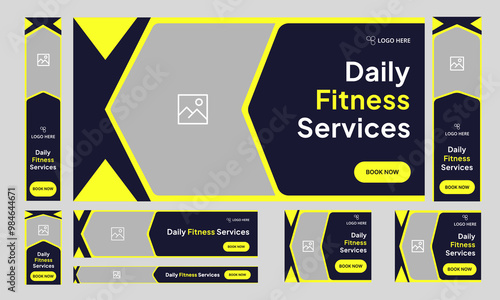 Vektorové fitness horizontální banner set. Speciální nabídky členství v tělocvičně, bezplatné vstupenky a přístup k nejlepšímu vybavení a lekcím tělocvičny.