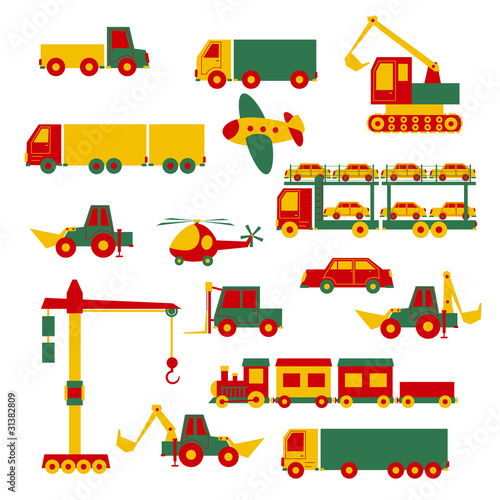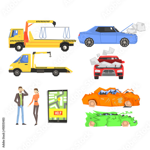 Vektorové ikony sada hasič profese lidí izolovaných na bílém pozadí. Hasičský vůz, vrtulník, hasiči zachraňující lidi, les, dopravu a dům před požárními plochými designovými prvky.