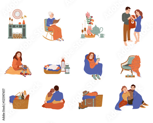 Vektorové ikony sada mateřských kreslených postaviček izolovaných na bílém pozadí. Těhotné ženy, mladé matky s dětmi a starší matka s dospělým synem plochý styl designových prvků.
