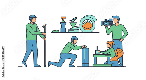 Vektorové ikony sada Kadeřnictví, Holičství, tetování studio zaměstnanců a klientů, kreslené postavičky, izolované na bílém pozadí. Ploché designové prvky.
