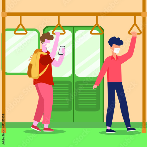 Vektorové ilustrace uklízečka dělá vysávání s vysavačem. Úklidová společnost služby koncept designový prvek v plochém stylu.