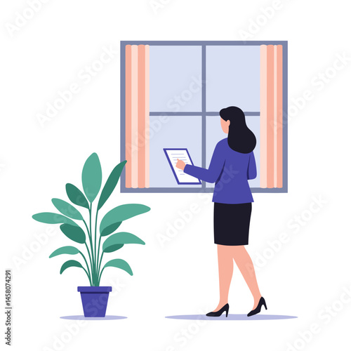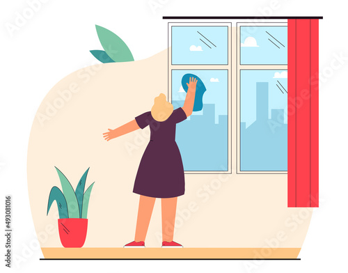 Vektorové ilustrace uklízečka mytí podlahy s houbou mop. Úklidová společnost služby koncept designový prvek v plochém stylu.