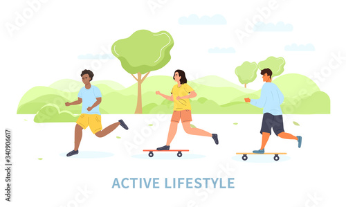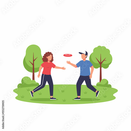 Vektorová ilustrace šťastného milujícího páru běžícího k sobě. Setkání milovníků v parku plochý styl designového prvku.