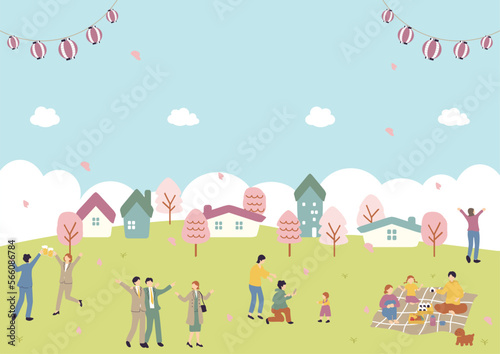 Vektorová ilustrace šťastných párů odpočívajících v parku. Milující rodinný pár se svou dcerou. Milenci chlapci a dívky chodí na rande. Plochý design.
