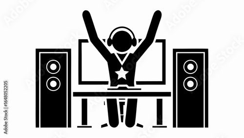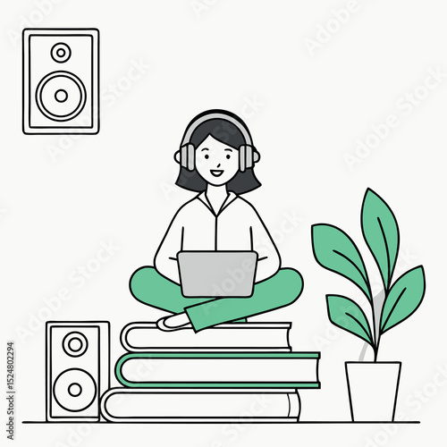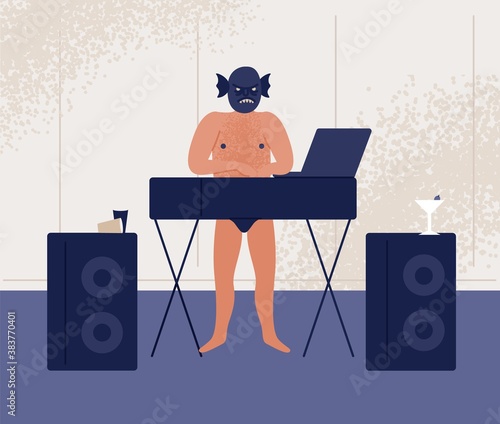 Vektorová ilustrace mladého hudebníka hrajícího na syntezátor. Pianista hrající na klávesnici. Plochý design.