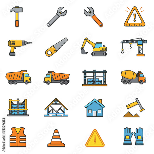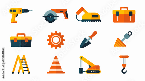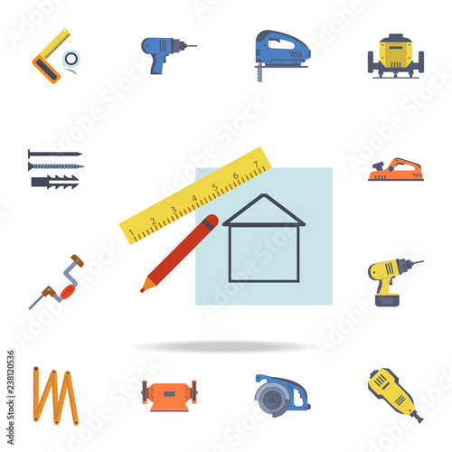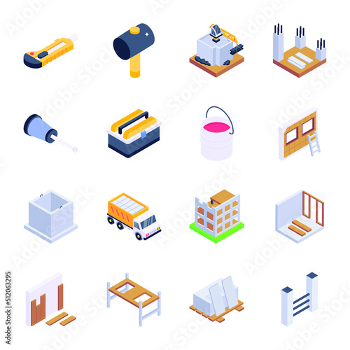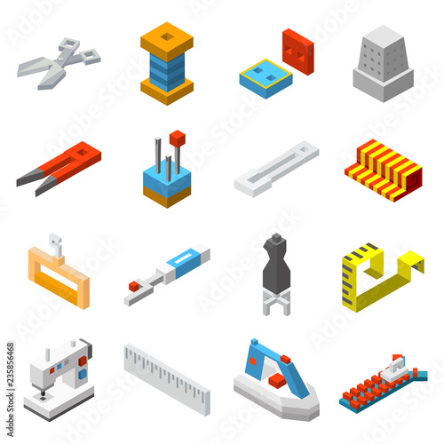 Sada nástrojů pro domácí opravy. Vektorové ploché izometrické opravy stavební práce nástroj a zařízení icon set. Sada nástrojů, Ruční vrtačka, kladivo, šroubovák, měřicí páska, nůž, malířský váleček, štětec, žebřík atd.