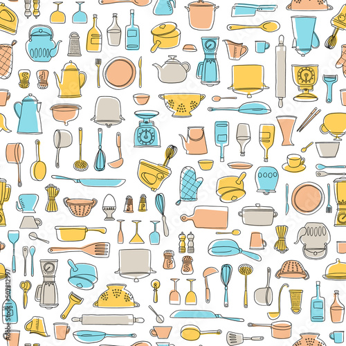 Vektorový Bezešvý vzor s ozdobnými symboly holení a péče, ikonami. Holičství pozadí, balicí papír textura tenká linie umění plochý styl designu.