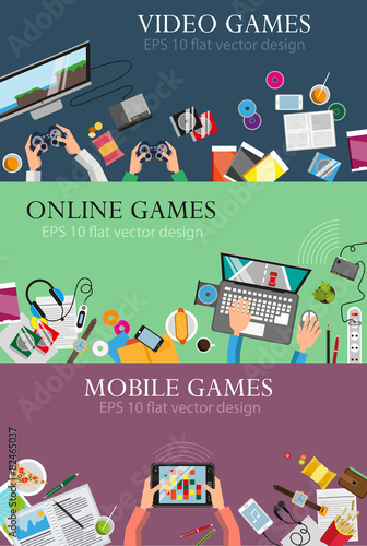Vektorová sada horizontálních bannerů s nádobím, kuchyňskými a kuchyňskými spotřebiči line art flat style designové prvky, webové šablony.