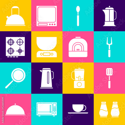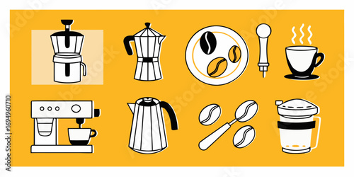 Vektorový bezproblémový vzor s dekorativními kuchyňskými spotřebiči a symboly vaření, ikony. Kuchyně pozadí, balicí papír textura tenká linie umění plochý styl designu.