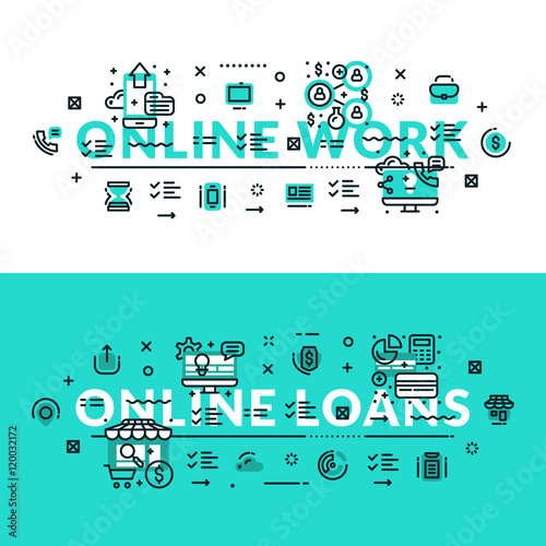 Vektorová sada horizontálních bannerů s uměním, barvami a materiály pro kreslení liniového umění plochých designových prvků, webových šablon.
