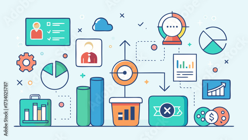 Vektorový Bezešvý vzor s dekorativními fotografickými symboly, ikonami. Fotografie pozadí, balicí papír textura tenká čára umění plochý styl designu.