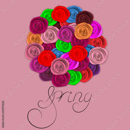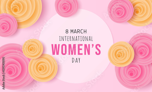 Šťastné dámské den blahopřání. Vektorový květinový designový prvek s papírovými růžovými růžemi na bílém pozadí. 8. března, přání ke Dni matek.