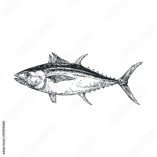 Vektorové geometrické zvířecí tetování nebo potisk trička. Žralok v kombinaci s noční oblohou, Fáze měsíce v geometrickém tvaru trojúhelníku.