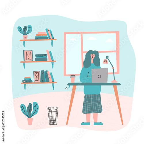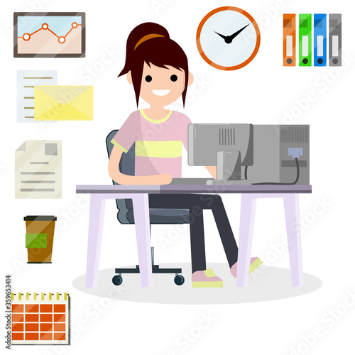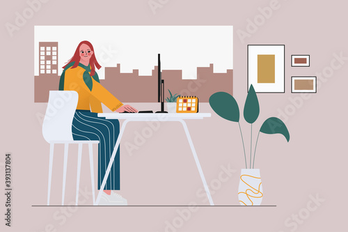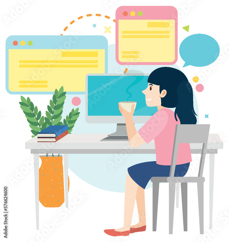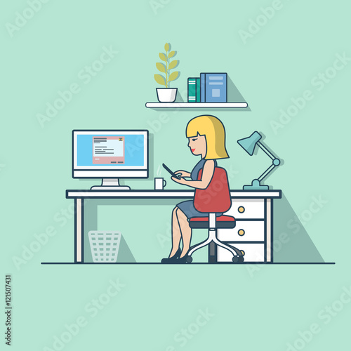 Vector graphic design. Umělkyně pracuje v kancelářské ilustraci. Žena illustrator kreslení herní aktiva pomocí počítačového softwaru v domácím pracovním prostoru. Profesionální kreativní návrhář povolání