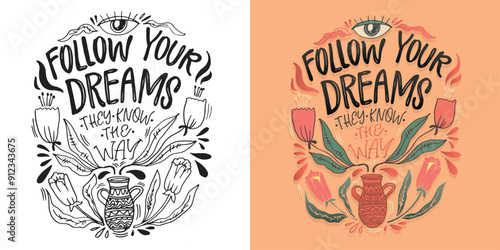 Vektorová sada kreativních designových prvků ve stylu boho s kmenovými šípy, peřím, jeleními parohy, květinami a inspirativními citáty. Ručně kreslená ilustrace náčrtu.