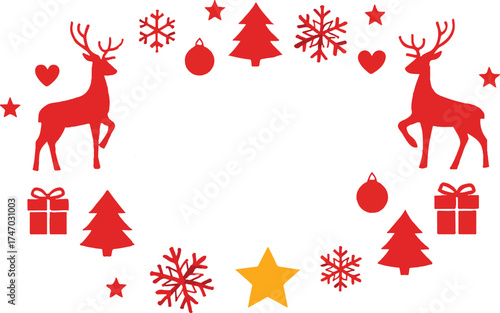 Vektorové ručně kreslené Veselé Vánoce a Šťastný Nový rok 2017 designové prvky izolované na bílém pozadí. Ornament, cukrová třtina, holly bobule, jeleni, Santa Claus jízda na saních, jedle, nápisy.