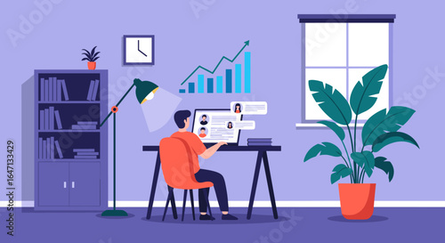 Vektorová ilustrace malíře mladého muže kreslí květinu z přírody štětcem. Artist plochý styl designový prvek.