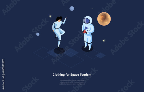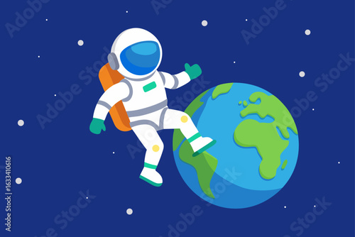Vektorová ilustrace Astronauta chůze na povrchu Měsíce. Start rakety, planeta Země. Moon exploration concept designový prvek v plochém stylu.