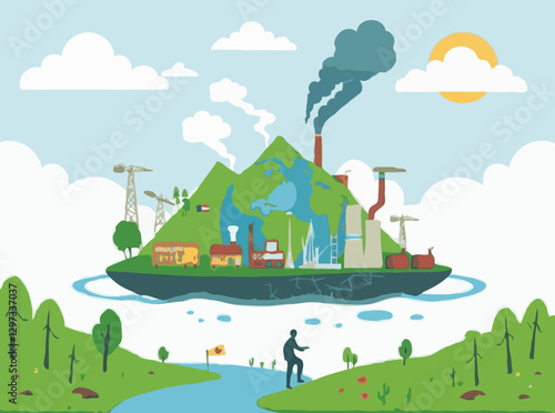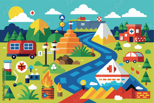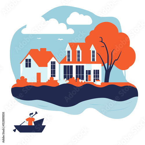 Vektorová ilustrace lodi a lodi plovoucí po moři. Business a leadership concept design element v plochém stylu.