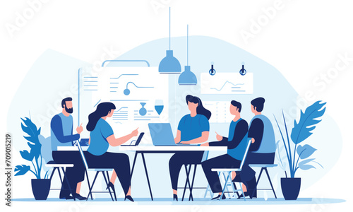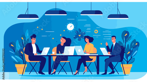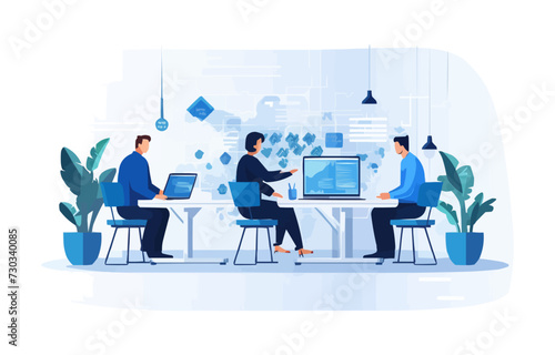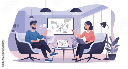 Vektorová ilustrace podnikatelů na letišti. Podnikatelé s tabletem, notebook sedí v čekárně. Služební cesta, cestování letadlem koncept designový prvek v plochém stylu.