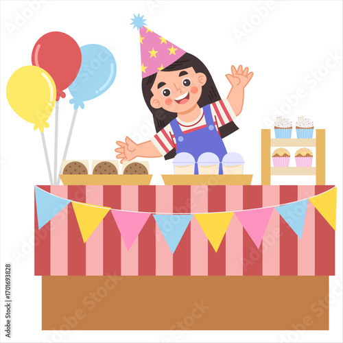 Vektorová ilustrace interiéru jídelny v plochém stylu. Kantýna designový prvek s ženou sloužící návštěvník muže.