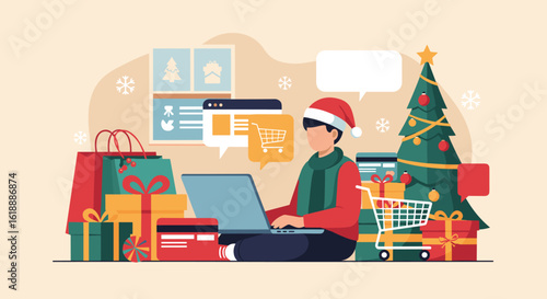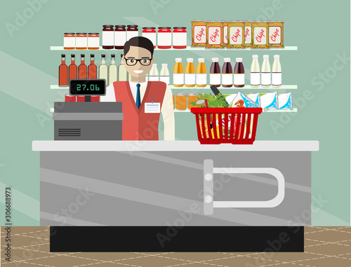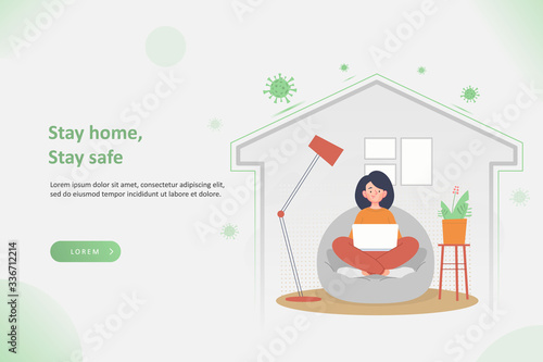Chemická laboratoř koncept vektorová ilustrace v plochém stylu. Chemička v ochranném oblečení, brýlích a rukavicích testuje chemické prvky. Laboratorní interiér a sklo.