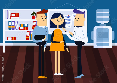 Vektorové ilustrace kavárny design šablony s barista a návštěvník. Zákazník stojící u barového pultu. Interiér kavárny v plochém stylu.