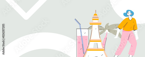 Vektorová ilustrace matky a malého syna v kuchyni. Žena vaří, malý chlapec sedí u stolu v dětské židli. Housewife concept designový prvek v plochém stylu.