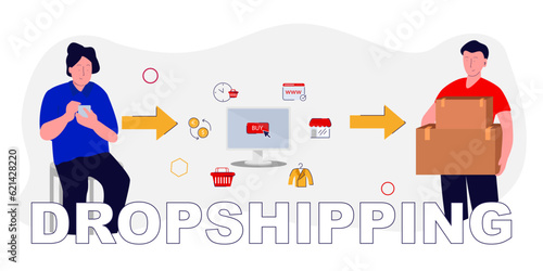 Vektorové ilustrace módní pánské obchod interiéru v plochém stylu. Člověk bude nakupovat. Manekýn v ležérním oblečení.