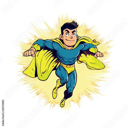 Vektorové ilustrace létání superman v retro pop art komické stylu. Superhrdina, zachránce světa před nespravedlností.
