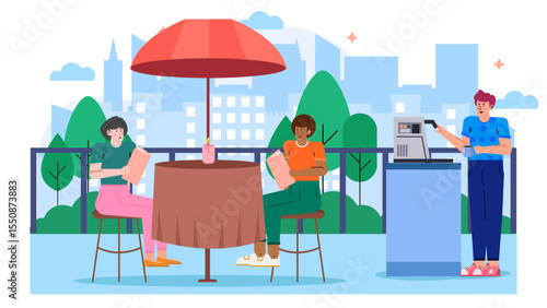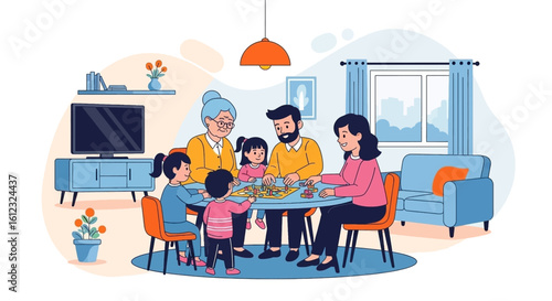 Vektorová ilustrace babičky sedící v křesle a sledování televize. Kočka ležící za ní. Kreslené postavičky a interiér obývacího pokoje v plochém designu.