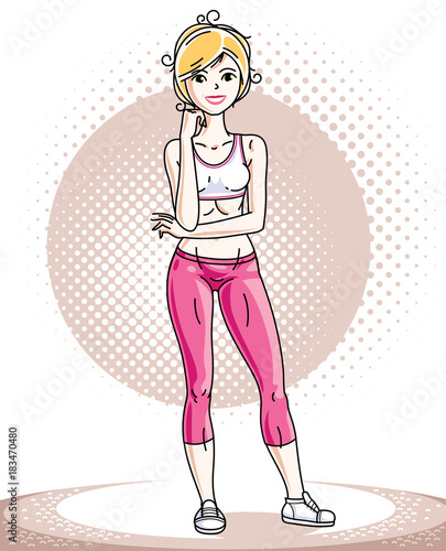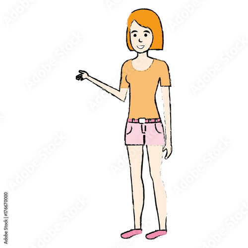 Vektorová ilustrace usmívající se ženy sedící na židli a držící nůžky, hřebeny a vysoušeč vlasů. Kadeřník v retro pop art komickém stylu.