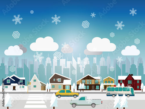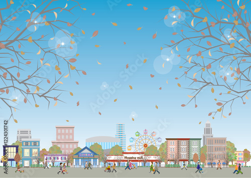 Vektorová ilustrace lidí bruslení na kluziště. Kreslené postavičky, Panoráma města. Zimní sporty a aktivity koncept designový prvek v plochém stylu.