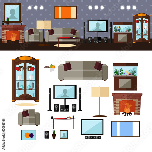Vektorové ilustrace místa k odpočinku v domě nebo bytě. Home interiérový designový prvek v plochém stylu