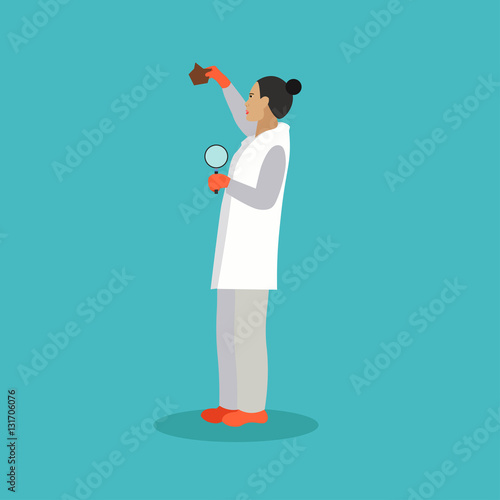Vektorové ilustrace výzkumnice ženy. Archeologie koncept v plochém stylu.