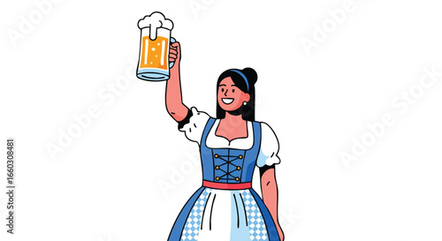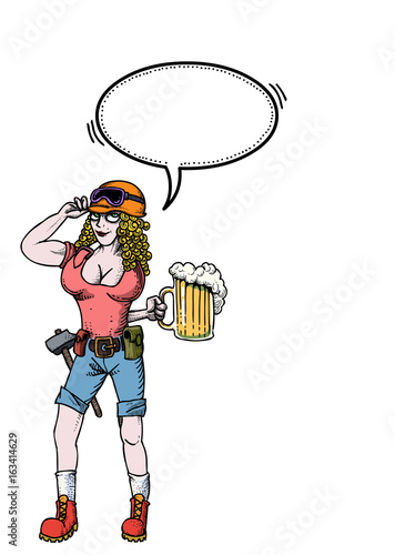 Vektorová ilustrace hezké blondýnky s pivem v klobouku námořníka kapitána. Mariner žena salutující v retro pop art komickém stylu.
