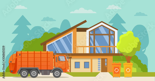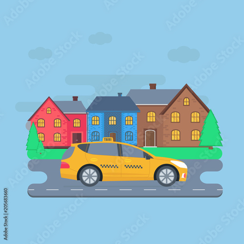 Vektorová ilustrace školního autobusu jedoucího na ulici. Školní dopravní koncept designový prvek v plochém stylu.