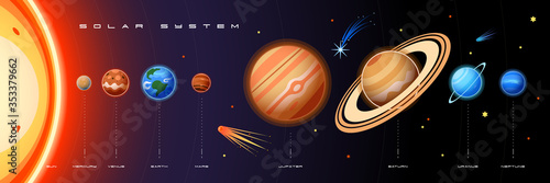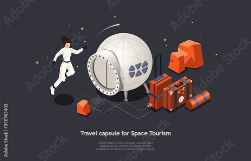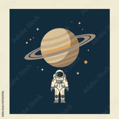 Vektorová ilustrace vesmírné základny a astronautů, kteří kráčejí po povrchu planety. Prstencová planeta Saturn. Space exploration concept designový prvek v plochém stylu.