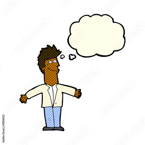Vektorové ilustrace podnikatel přemýšlet, jak vydělat peníze. Obchodní koncept designový prvek v retro pop art komiksovém stylu.