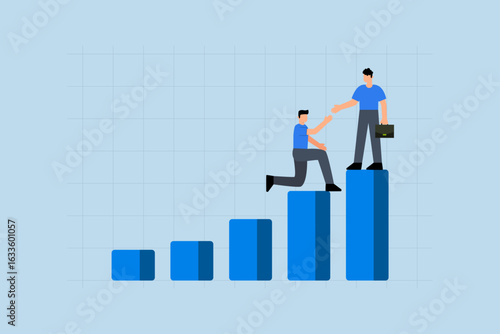 Vektorová ilustrace dvou podnikatelů vedle rostoucího diagramu. Stoprocentní znamení, plochý styl designu.