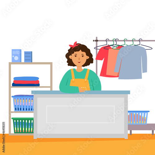 Vektorová ilustrace číšníka stojícího u stolu. Personál restaurace concept designový prvek v plochém stylu.