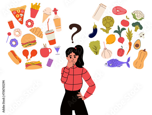 Vektorové ilustrace krásné ženy s menu. Servírka charakter, sladkosti, pečivo, pečená krůta v retro pop art komické stylu.
