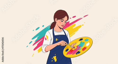 Vektorová ilustrace šťastné mladé ženy a prasátko s mincemi v retro pop art komickém stylu.